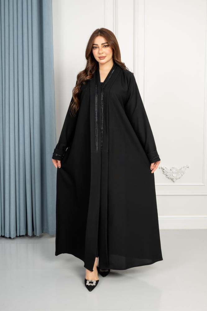 عباية قصه مستقيمه بتدخيله كلفه فصوص على الكم وا من الامام