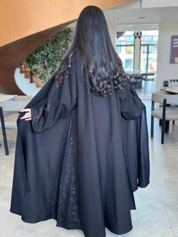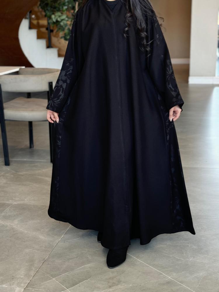 عبايه نص كلوش بتدخيله جاكار على الجنب وعلى الكم