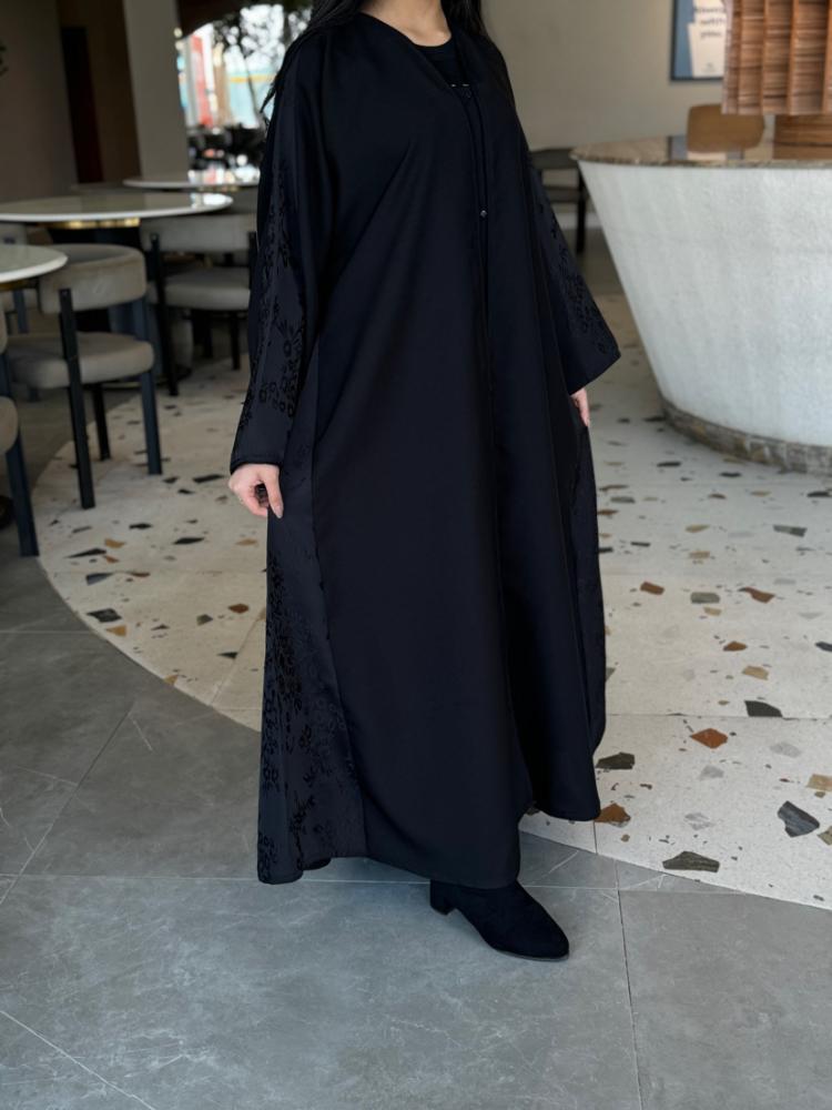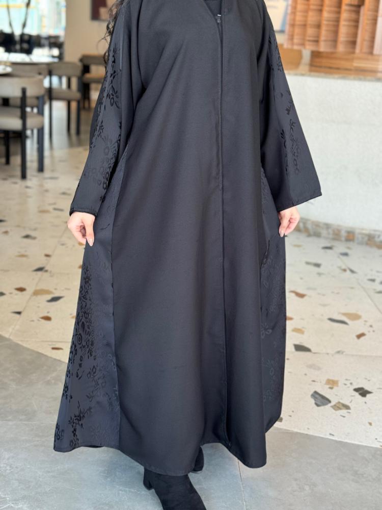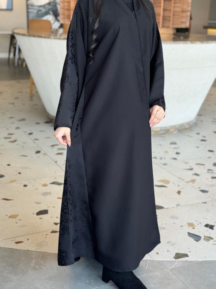 عبايه ساده بتدخيله جاكار على الجنب وعلى الكم